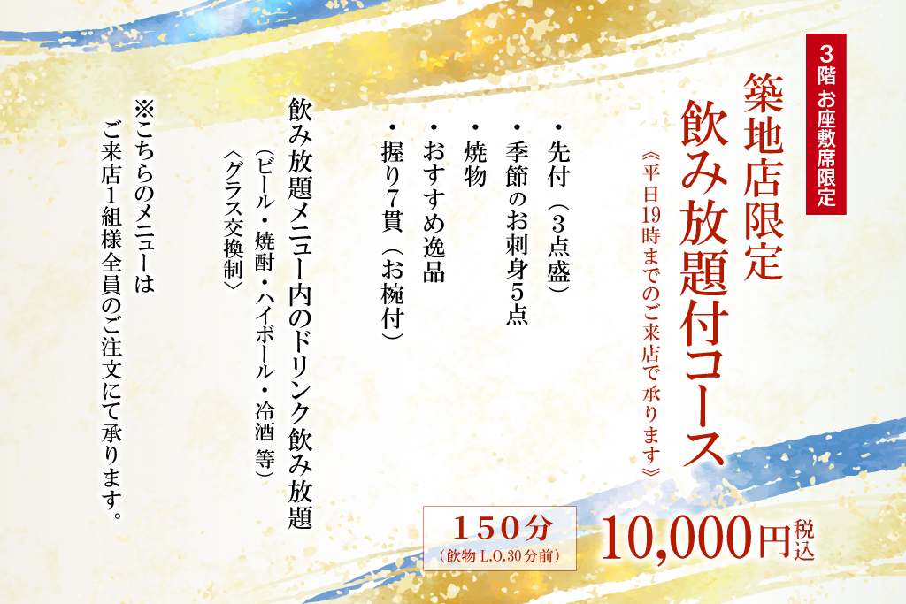 築地店限定 飲み放題付きメニュー